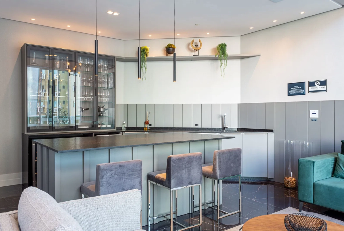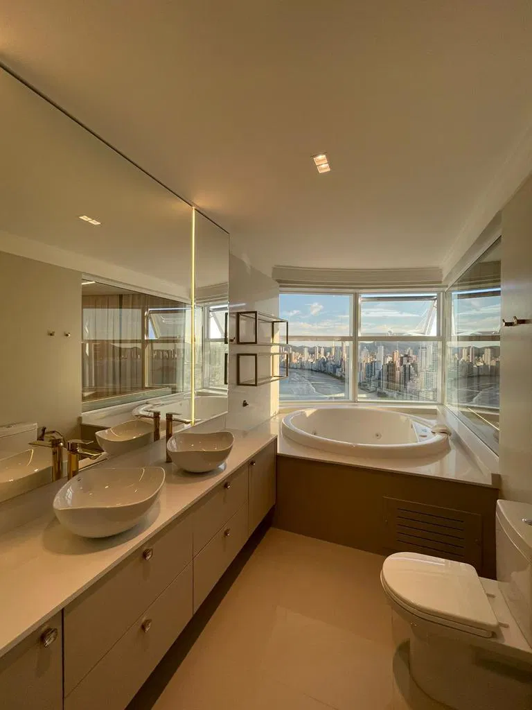 Apartamento com vista definitiva, finamente mobiliado, com 3 suites, amplo living, lavabo e 3 vagas de garagem.