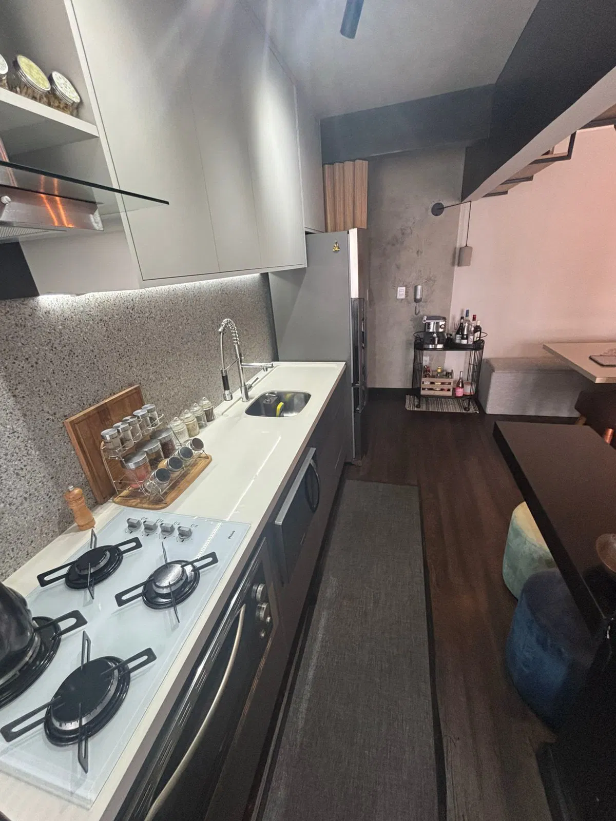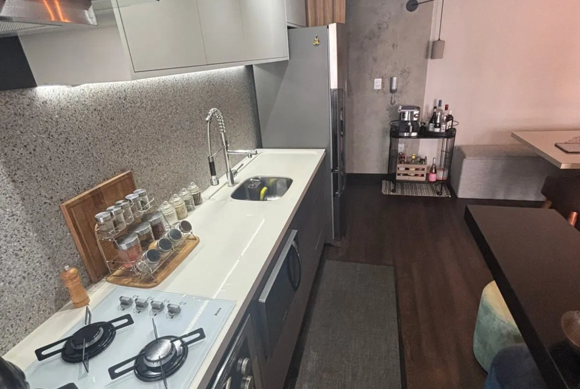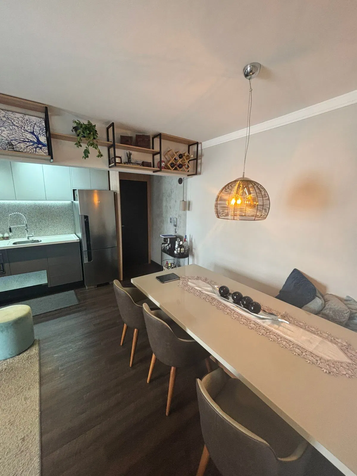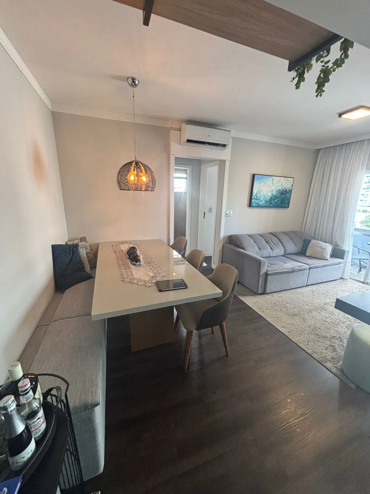 Apartamento mobiliado e decorado, com 2 dormitórios, piso em porcelanato, móveis planejados, sacada aberta e 1 vaga de garagem privativa.